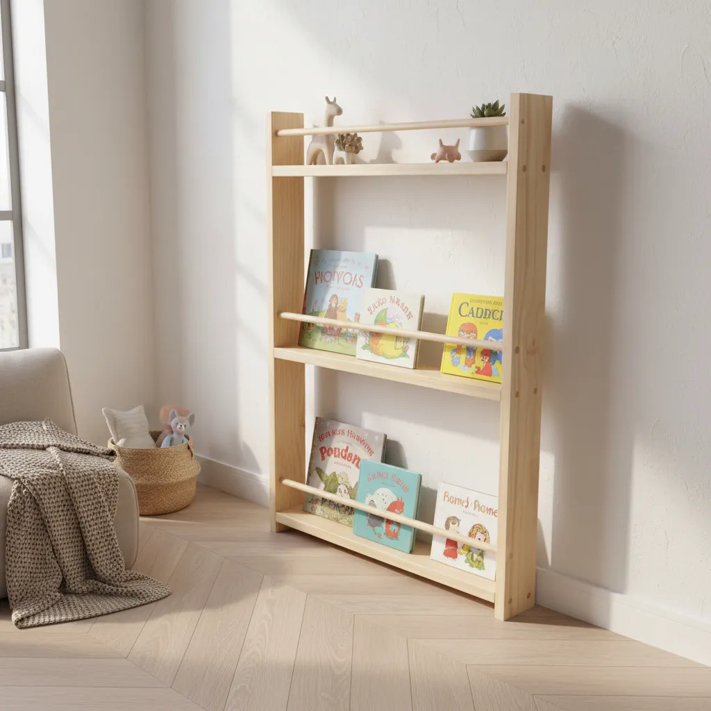 El Librero/Estante Montessori contra Muro de Ludique es la opción ideal para quienes buscan una solución funcional y estética para organizar libros y objetos decorativos. Con un diseño simple y acogedor, este librero/estante se integra perfectamente en cualquier ambiente, aportando calidez y estilo para tus hijos.